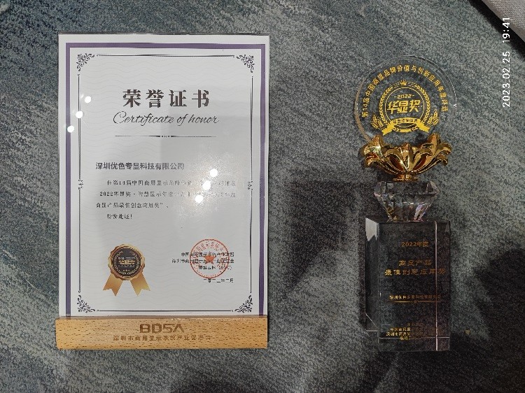 ?熱烈祝賀優(yōu)色專顯榮獲“2022年度商顯產(chǎn)品最佳創(chuàng)意應(yīng)用獎(jiǎng)”-華顯獎(jiǎng)