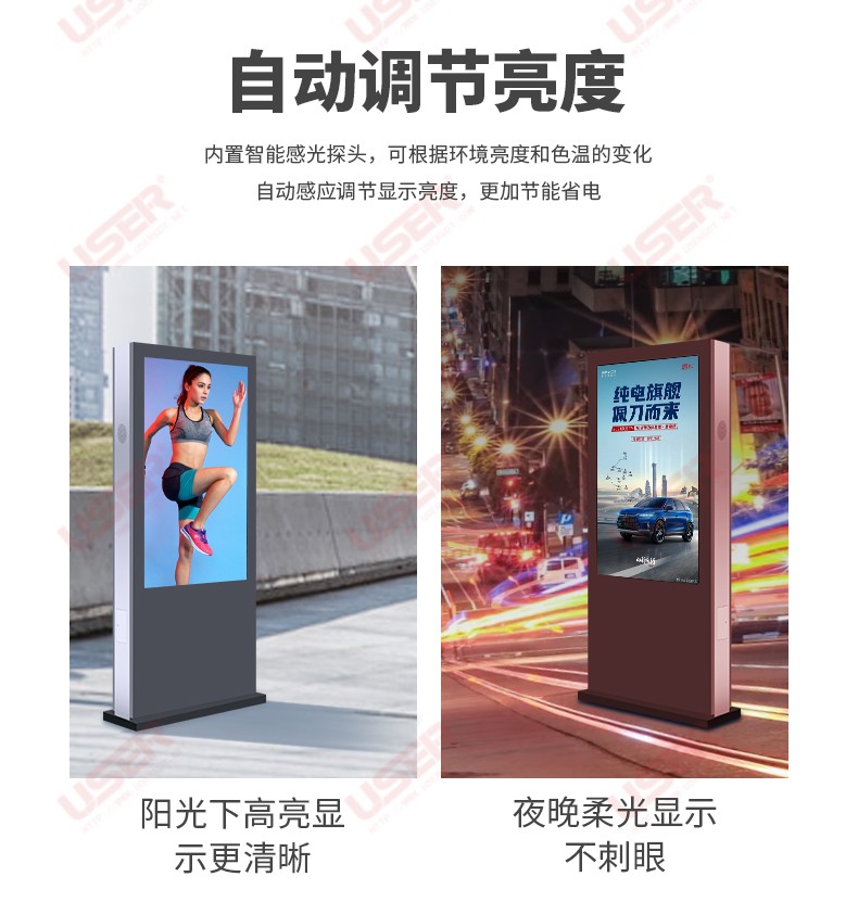 菜單產(chǎn)品中心Product center 液晶廣告機(jī) 壁掛式廣告機(jī) 落地立式廣告機(jī) 電梯超薄廣告機(jī) 車(chē)載廣告機(jī) 高亮廣告機(jī) 戶(hù)外廣告機(jī) 液晶拼接屏 專(zhuān)業(yè)液晶拼接屏 4K液晶拼接屏 廣告拼接屏 無(wú)縫液晶拼接屏 觸摸液晶拼接屏 LED顯示屏 觸控一體機(jī) 壁掛式觸控一體機(jī) 立式觸控一體機(jī) 斜面觸控一體機(jī) 智能家居觸控一體機(jī) 戶(hù)外觸控一體機(jī) 液晶電子白板 教育電子白板 會(huì)議電子白板 工控一體機(jī) 觸摸顯示器 紅外觸摸顯示器 電容觸摸顯示器 電阻觸摸顯示器 聲波觸摸顯示器 納米觸摸顯示器 液晶監(jiān)視器 專(zhuān)業(yè)級(jí)監(jiān)視器 4K監(jiān)視器 嵌入式監(jiān)視器 機(jī)架式監(jiān)視器 開(kāi)放式監(jiān)視器 SDI監(jiān)視器 高亮監(jiān)視器 廣播級(jí)監(jiān)視器 工業(yè)顯示器 4K顯示器 機(jī)架式顯示器 開(kāi)放式顯示器 醫(yī)療顯示器 KVM顯示器 指揮室顯示器 智慧校園產(chǎn)品 專(zhuān)業(yè)定制商顯 多屏廣告機(jī) 多功能觸控一體機(jī) 多功能廣告機(jī) 微信打印廣告機(jī) 魔鏡廣告機(jī) 透明廣告機(jī) 全息廣告機(jī) 條形屏廣告機(jī) 旋轉(zhuǎn)廣告機(jī) 裸眼3D廣告機(jī) 人工智能產(chǎn)品 顯示配套設(shè)備 拼接配套設(shè)備 廣告機(jī)播放盒 OPS播放盒 拼接支架 移動(dòng)支架 相關(guān)軟件 吊頂支架 線材 木架 蜂窩箱 桌面底座 熱門(mén)產(chǎn)品 →優(yōu)色3.5mm超窄邊46寸液晶拼接屏→優(yōu)色49寸3.5mm超窄邊液晶拼接屏→優(yōu)色3.5mm超窄邊55寸液晶拼接屏 您的位置:首頁(yè) → 公司產(chǎn)品 → 液晶廣告機(jī) → 戶(hù)外廣告機(jī) 49寸戶(hù)外落地廣告機(jī)類(lèi)別:戶(hù)外廣告機(jī) 簡(jiǎn)介:液晶尺寸:49英寸 1.整機(jī)采用風(fēng)冷方案,達(dá)到IP65防護(hù)等級(jí),防塵、防水,可完全安裝于室外; 2.高亮度的液晶顯示屏,配合自動(dòng)光感控制系統(tǒng)陽(yáng)光下可視; 3.具備溫控功能,在寬溫條件下可以正常工... 在線咨詢(xún) 返回列表 產(chǎn)品說(shuō)明 相關(guān)產(chǎn)品 55寸戶(hù)外壁掛廣告機(jī) 55寸戶(hù)外落地廣告機(jī) 49寸戶(hù)外落地廣告機(jī) 43寸戶(hù)外落地廣告機(jī) 32寸戶(hù)外落地廣告機(jī) 65寸戶(hù)外燈桿屏_智慧路燈屏