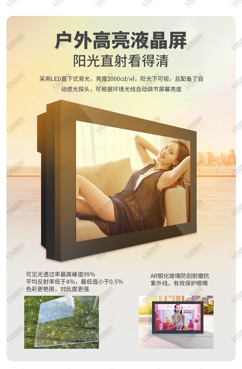 菜單產(chǎn)品中心Product center 液晶廣告機(jī) 壁掛式廣告機(jī) 落地立式廣告機(jī) 電梯超薄廣告機(jī) 車載廣告機(jī) 高亮廣告機(jī) 戶外廣告機(jī) 液晶拼接屏 專業(yè)液晶拼接屏 4K液晶拼接屏 廣告拼接屏 無縫液晶拼接屏 觸摸液晶拼接屏 LED顯示屏 觸控一體機(jī) 壁掛式觸控一體機(jī) 立式觸控一體機(jī) 斜面觸控一體機(jī) 智能家居觸控一體機(jī) 戶外觸控一體機(jī) 液晶電子白板 教育電子白板 會(huì)議電子白板 工控一體機(jī) 觸摸顯示器 紅外觸摸顯示器 電容觸摸顯示器 電阻觸摸顯示器 聲波觸摸顯示器 納米觸摸顯示器 液晶監(jiān)視器 專業(yè)級(jí)監(jiān)視器 4K監(jiān)視器 嵌入式監(jiān)視器 機(jī)架式監(jiān)視器 開放式監(jiān)視器 SDI監(jiān)視器 高亮監(jiān)視器 廣播級(jí)監(jiān)視器 工業(yè)顯示器 4K顯示器 機(jī)架式顯示器 開放式顯示器 醫(yī)療顯示器 KVM顯示器 指揮室顯示器 智慧校園產(chǎn)品 專業(yè)定制商顯 多屏廣告機(jī) 多功能觸控一體機(jī) 多功能廣告機(jī) 微信打印廣告機(jī) 魔鏡廣告機(jī) 透明廣告機(jī) 全息廣告機(jī) 條形屏廣告機(jī) 旋轉(zhuǎn)廣告機(jī) 裸眼3D廣告機(jī) 人工智能產(chǎn)品 顯示配套設(shè)備 拼接配套設(shè)備 廣告機(jī)播放盒 OPS播放盒 拼接支架 移動(dòng)支架 相關(guān)軟件 吊頂支架 線材 木架 蜂窩箱 桌面底座 熱門產(chǎn)品 →優(yōu)色3.5mm超窄邊46寸液晶拼接屏→優(yōu)色49寸3.5mm超窄邊液晶拼接屏→優(yōu)色3.5mm超窄邊55寸液晶拼接屏 您的位置:首頁 → 公司產(chǎn)品 → 液晶廣告機(jī) → 戶外廣告機(jī) 55寸戶外壁掛廣告機(jī)類別:戶外廣告機(jī) 簡(jiǎn)介:液晶尺寸:55英寸 1.整機(jī)采用風(fēng)冷方案,達(dá)到IP65防護(hù)等級(jí),防塵、防水,可完全安裝于室外; 2.高亮度的液晶顯示屏,配合自動(dòng)光感控制系統(tǒng)陽光下可視; 3.具備溫控功能,在寬溫條件下可以正常工... 在線咨詢 返回列表 產(chǎn)品說明 相關(guān)產(chǎn)品 55寸戶外壁掛廣告機(jī) 55寸戶外落地廣告機(jī) 49寸戶外落地廣告機(jī) 43寸戶外落地廣告機(jī) 32寸戶外落地廣告機(jī) 65寸戶外燈桿屏_智慧路燈屏