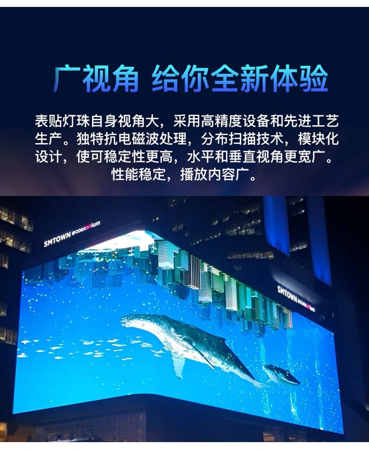 本產(chǎn)品為優(yōu)色專顯A 系列戶外前維護(hù)防水產(chǎn)品,采用 320x160mm 防水模塊, 搭配 960x960mm 標(biāo)配箱體,可實現(xiàn)模組前維護(hù)。該系列產(chǎn)品適用于戶外各類不同環(huán)境亮度的應(yīng)用領(lǐng)域,具有高亮高對比、畫面絢爛真實、防護(hù)能力高、耐候性優(yōu)良、使用壽命長等特點(diǎn)。