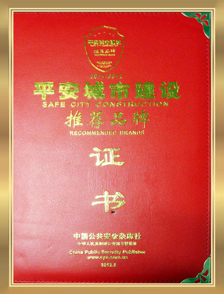 平安城市建設(shè)推薦品牌證書