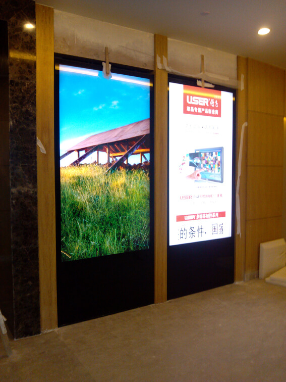 優(yōu)色立式82寸液晶廣告機應(yīng)用廈門某集團(tuán)大廈