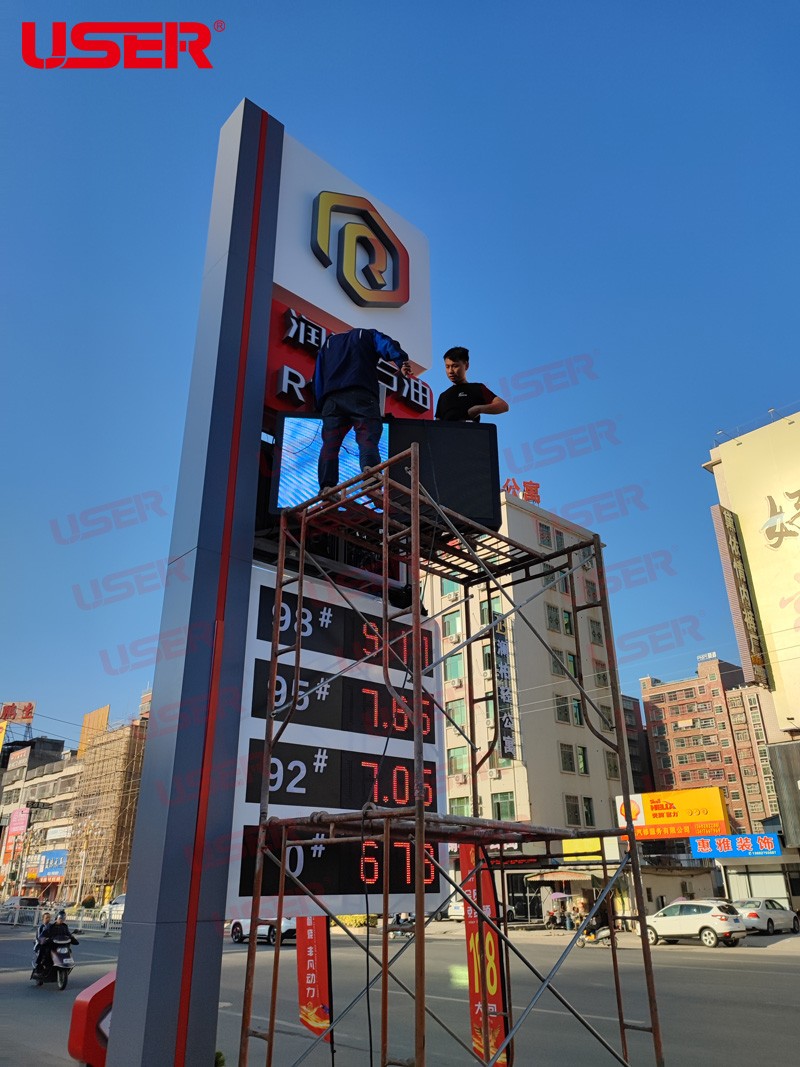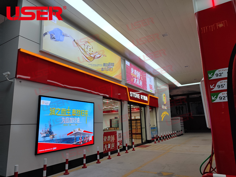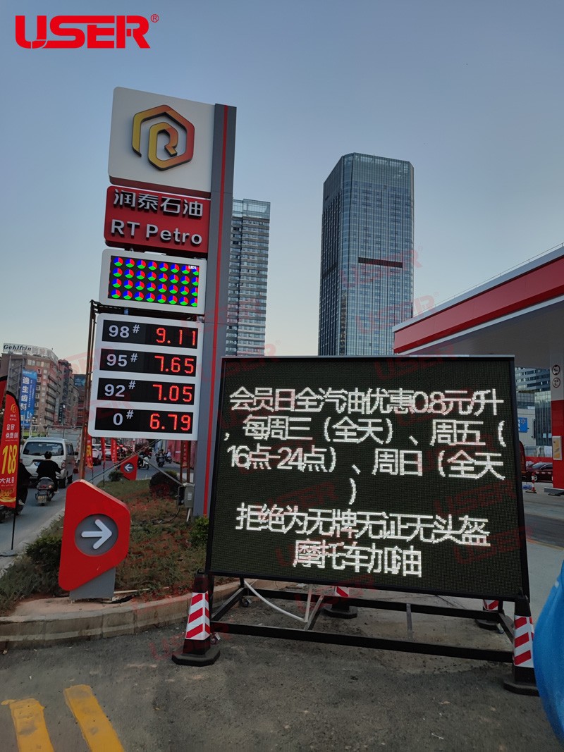 揭陽市潤泰加油站采用優(yōu)色專顯P2高刷全彩led顯示屏全套整體解決方案