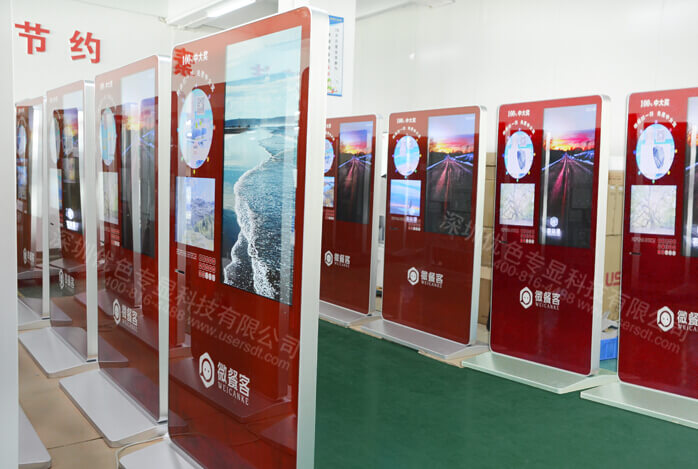 該產(chǎn)品為雙屏微信廣告促銷機(jī):左右2個(gè)顯示屏。左側(cè)32寸、右側(cè)42寸。