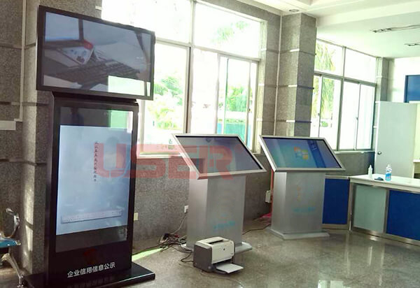 →海南省東方市工商局落地廣告機(jī)_雙屏廣告機(jī)_斜面觸摸一體機(jī)案例展示