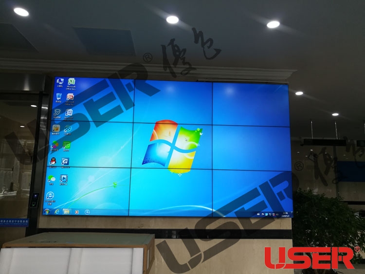 →湖南永州冷水灘區(qū)農(nóng)業(yè)銀行總行46寸3.5mm拼縫3*3拼接屏