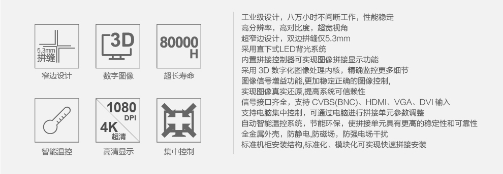 菜單產(chǎn)品中心Product center 液晶廣告機(jī) 壁掛式廣告機(jī) 落地立式廣告機(jī) 電梯超薄廣告機(jī) 車(chē)載廣告機(jī) 高亮廣告機(jī) 戶外廣告機(jī) 液晶拼接屏 專業(yè)液晶拼接屏 4K液晶拼接屏 廣告拼接屏 無(wú)縫液晶拼接屏 觸摸液晶拼接屏 LED顯示屏 觸控一體機(jī) 壁掛式觸控一體機(jī) 立式觸控一體機(jī) 斜面觸控一體機(jī) 智能家居觸控一體機(jī) 戶外觸控一體機(jī) 液晶電子白板 教育電子白板 會(huì)議電子白板 工控一體機(jī) 觸摸顯示器 紅外觸摸顯示器 電容觸摸顯示器 電阻觸摸顯示器 聲波觸摸顯示器 納米觸摸顯示器 液晶監(jiān)視器 專業(yè)級(jí)監(jiān)視器 4K監(jiān)視器 嵌入式監(jiān)視器 機(jī)架式監(jiān)視器 開(kāi)放式監(jiān)視器 SDI監(jiān)視器 高亮監(jiān)視器 廣播級(jí)監(jiān)視器 工業(yè)顯示器 4K顯示器 機(jī)架式顯示器 開(kāi)放式顯示器 醫(yī)療顯示器 KVM顯示器 指揮室顯示器 智慧校園產(chǎn)品 專業(yè)定制商顯 多屏廣告機(jī) 多功能觸控一體機(jī) 多功能廣告機(jī) 微信打印廣告機(jī) 魔鏡廣告機(jī) 透明廣告機(jī) 全息廣告機(jī) 條形屏廣告機(jī) 旋轉(zhuǎn)廣告機(jī) 裸眼3D廣告機(jī) 人工智能產(chǎn)品 顯示配套設(shè)備 拼接配套設(shè)備 廣告機(jī)播放盒 OPS播放盒 拼接支架 移動(dòng)支架 相關(guān)軟件 吊頂支架 線材 木架 蜂窩箱 桌面底座 熱門(mén)產(chǎn)品 →優(yōu)色3.5mm超窄邊46寸液晶拼接屏→優(yōu)色49寸3.5mm超窄邊液晶拼接屏→優(yōu)色3.5mm超窄邊55寸液晶拼接屏 您的位置:首頁(yè) → 公司產(chǎn)品 → 液晶拼接屏 → 專業(yè)液晶拼接屏 優(yōu)色5.3mm超窄邊55寸液晶拼接屏類別:專業(yè)液晶拼接屏 簡(jiǎn)介:◆ 型號(hào):US-PJ5501 ◆類型:三星/LG/BOE面板 ◆亮度:500-700cd/m2(可選) ◆超窄邊設(shè)計(jì),拼縫5.3mm ◆ 在ISO9001嚴(yán)格的質(zhì)量控制體系下生產(chǎn)? ◆ 色彩均勻,圖像穩(wěn)定,為拼接大畫(huà)面定制功能 ... 在線咨詢 返回列表 產(chǎn)品說(shuō)明 相關(guān)產(chǎn)品 優(yōu)色1.7mm超窄邊55寸液晶拼接屏 優(yōu)色49寸1.8mm超窄邊液晶拼接墻 優(yōu)色49寸3.5mm超窄邊液晶拼接屏 優(yōu)色3.5mm超窄邊55寸液晶拼接屏 優(yōu)色3.5mm超窄邊46寸液晶拼接屏 優(yōu)色5.3mm超窄邊55寸液晶拼接屏
