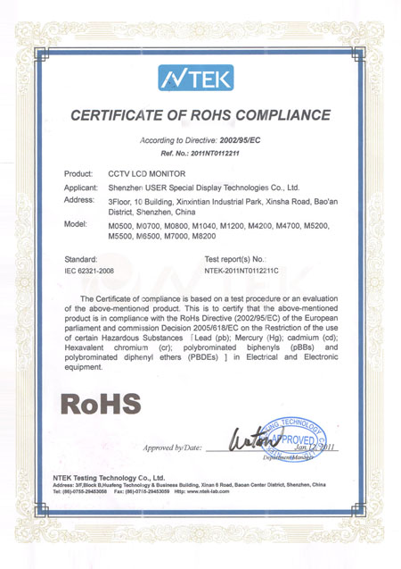 RoHS認證歐盟認證(液晶監(jiān)視器)